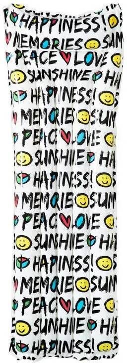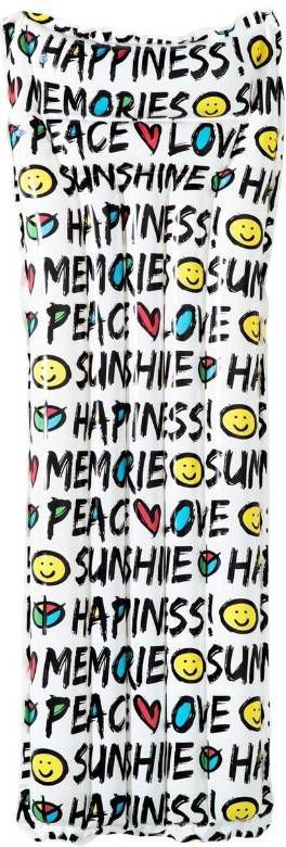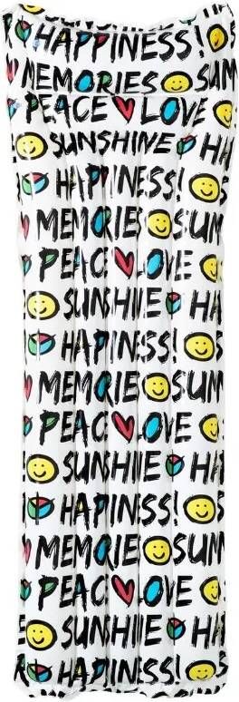 Met dit luchtbed van Bestway vol vrolijke woorden ben je helemaal klaar voor de zomer! Op de het aparte kussen is het uiterst lekker op het water dobberen. Het witte bed heeft teksten als 'Peace', 'Memories', 'Love' en 'Sunshine' en is aangevuld met smileys en peace-tekens. Het luchtbed is van sterk materiaal, maar komt voor de zekerheid inclusief een reparatiepatch.