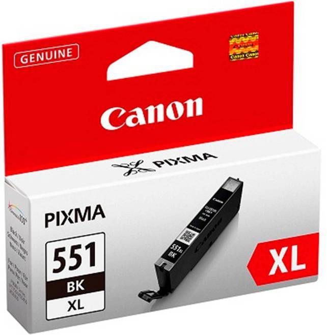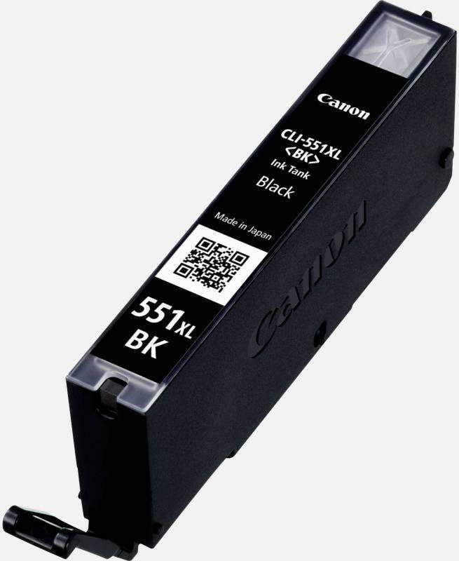 Met Canon's originele CLI-551XL cartridges met hoge capaciteit kun je meer printen voor minder zonder in te leveren op kwaliteit. Met de PIXMA XL-cartridges kun je aanzienlijk meer prints maken dan met standaardcartridges. De cartridges hoeven dus minder vaak te worden vervangen, ideaal als je veel print. XL-inktcartridge met zwarte inkt Deze zwarte inkt biedt hoge capaciteit en levert tot 2x meer prints dan de standaardcartridge. Met de 11 ml inktcartridge kun je tot 1130 foto's van 10 x 15 cm printen.